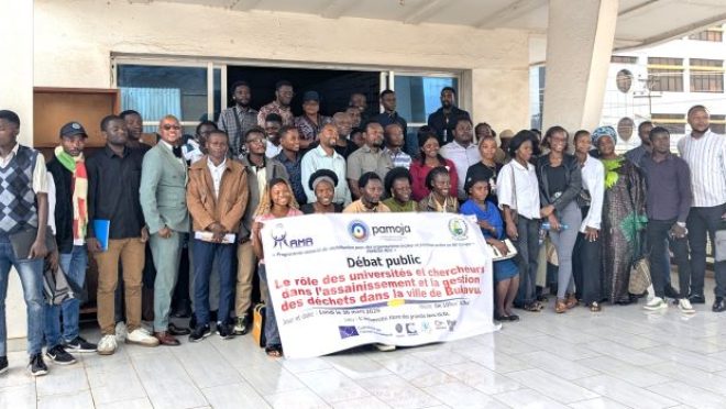 Les participant.es au débat public organisé par Mama Radio sur le rôle des universités et des chercheur.es dans l'assainissement et…